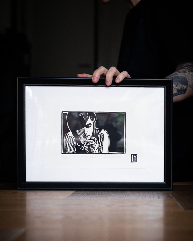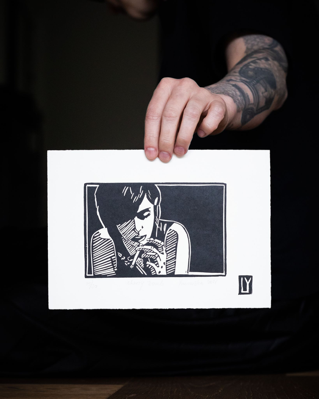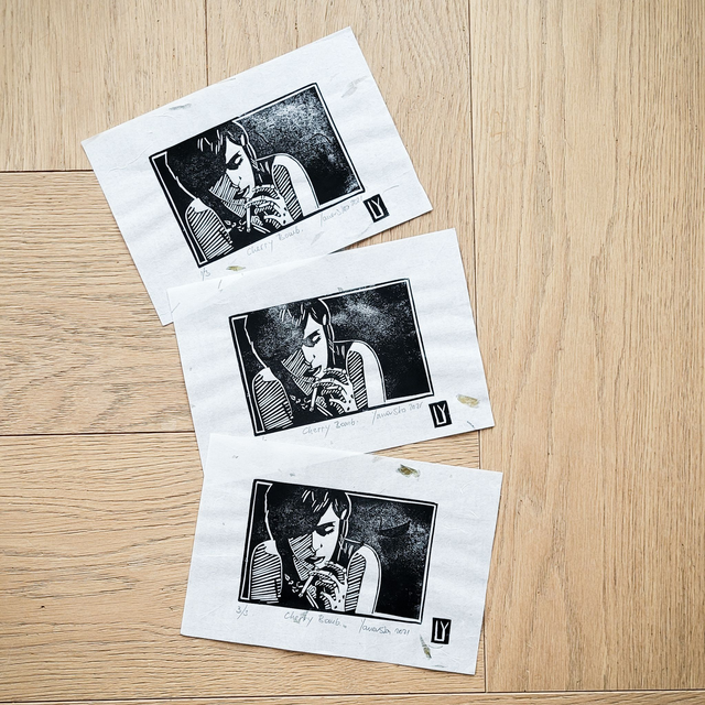 Original hand pressed linocut print: