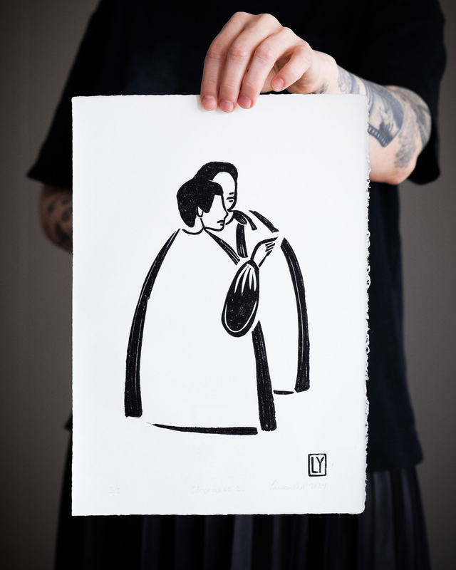 The motives are printed by hand using linocuts, designed and carved by Lana Yanovska.