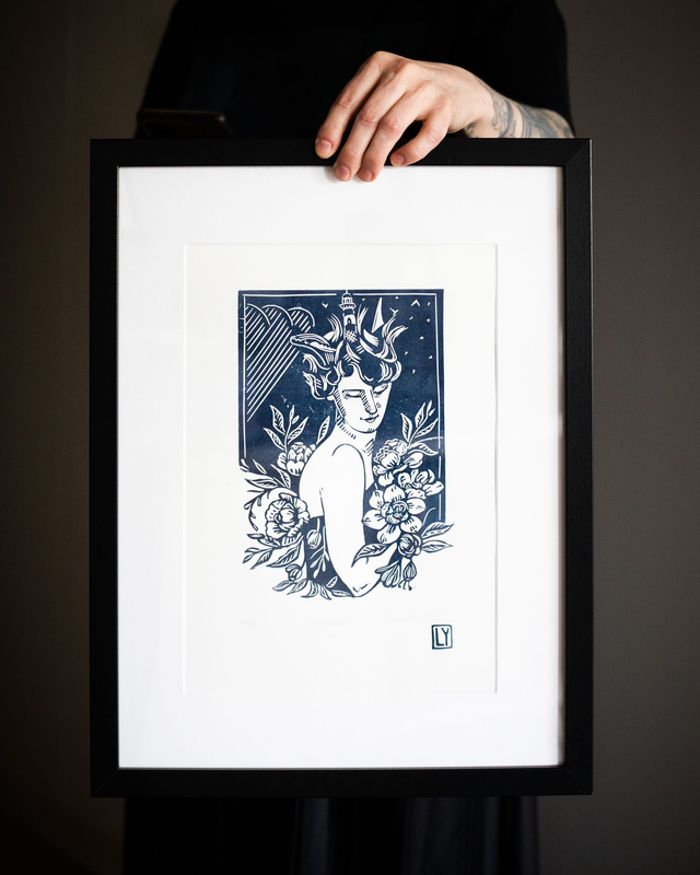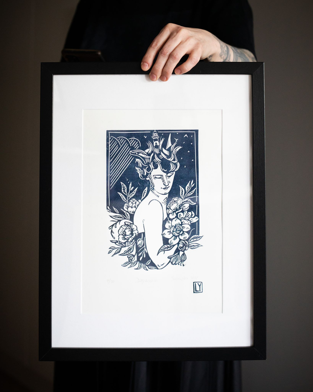 Original hand pressed lino print on fine 240 gm2 paper. All prints are numbered and signed.