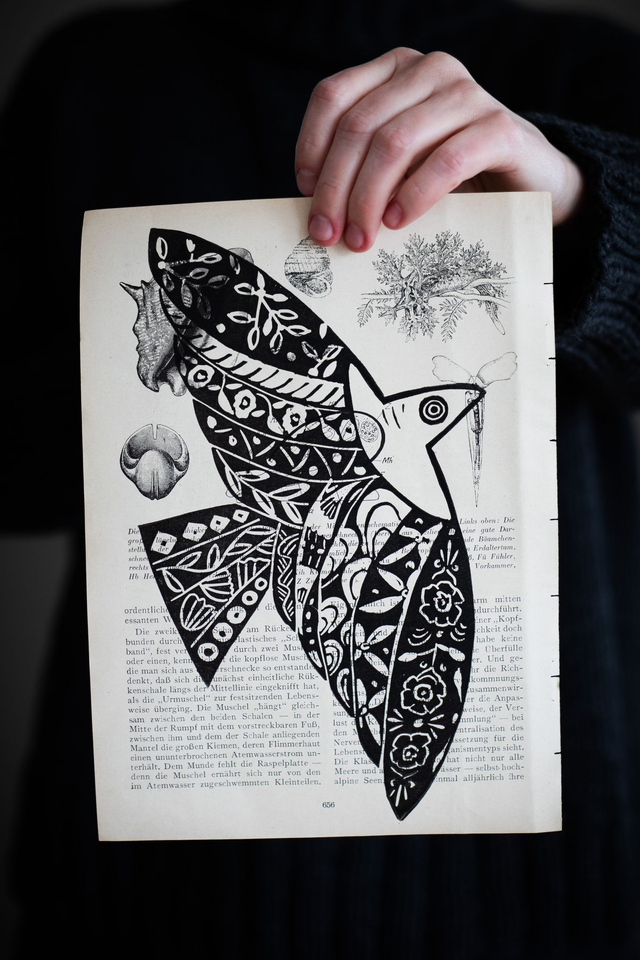 For these prints, I reuse vintage books and magazines that were damaged in some way and give them new life with my designs.