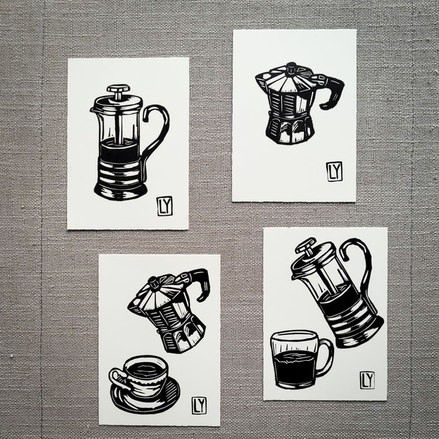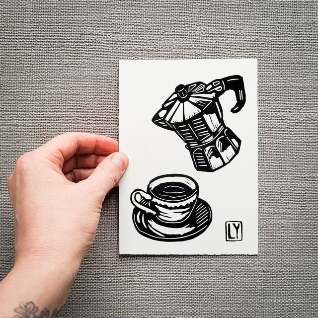 The card is printed using linocuts, designed and carved by Lana Yanovska. Open edition, each card is signed.