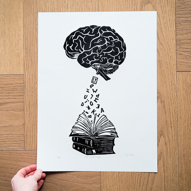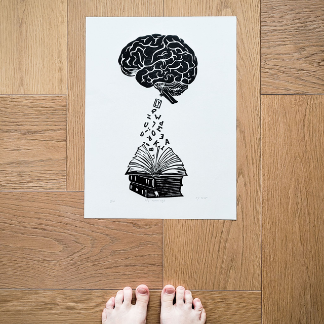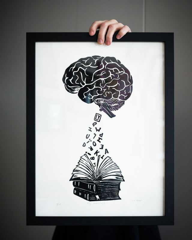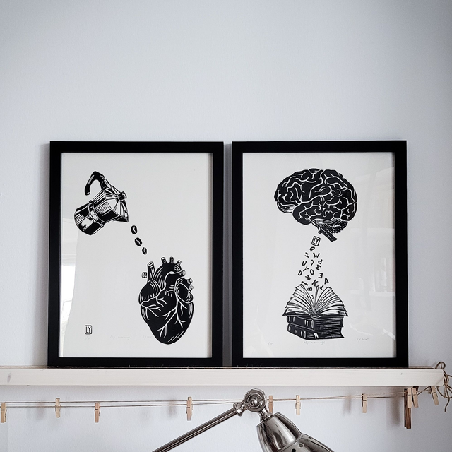 Original hand pressed lino print. The motives are printed by hand using linocuts, designed and carved by Lana Yanovska.