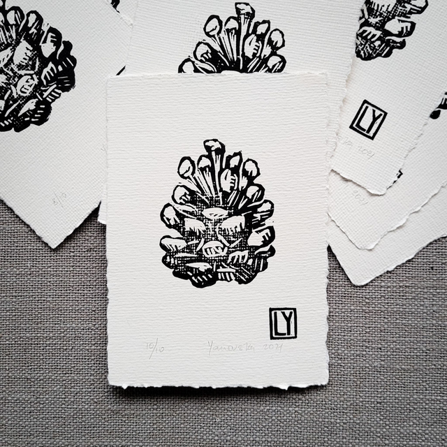 Original hand pressed linocut print on handmade structured 300 gm2 paper.