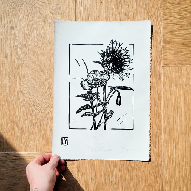 The motives are printed by hand using linocuts, designed and carved by Lana Yanovska.